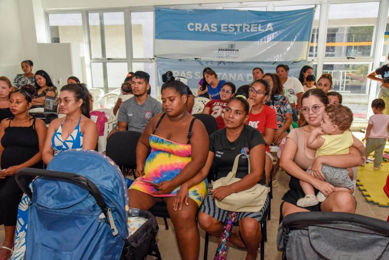 Em alusão ao Agosto Dourado, mês dedicado à promoção, proteção e apoio ao aleitamento materno, o CRAS Estrela Ananin realizou um momento especial que reuniu mães atendidas pelo próprio equipamento, além daquelas acompanhadas pelo CRAS Santana do Aurá.