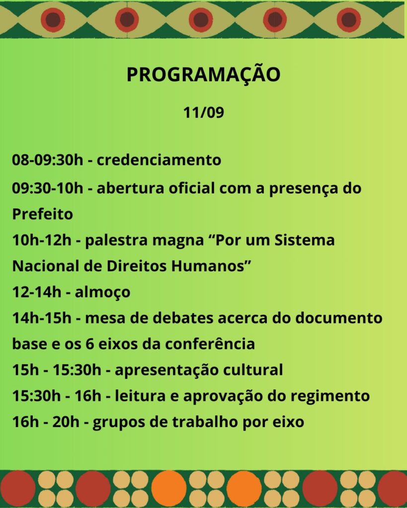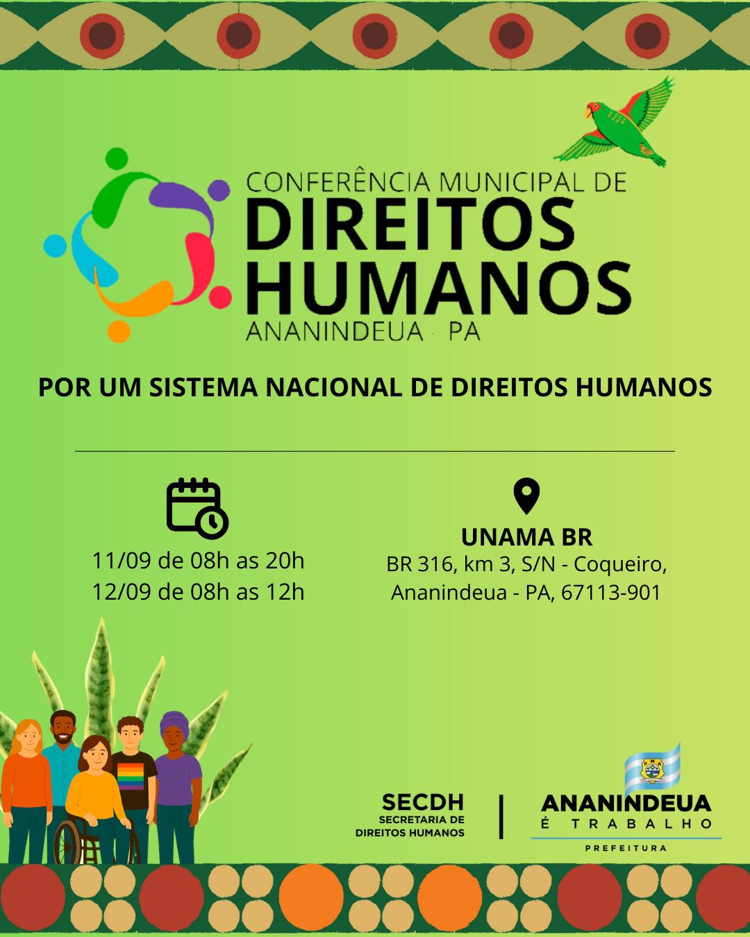 A conferência inaugura um ciclo de participação social em Ananindeua, alinhada ao tema “Por um Sistema Nacional de Direitos Humanos”, com palestras, mesas, GTs e eleição de delegados(as).
