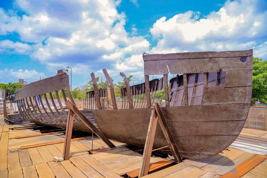 A embarcação metálica encontrada nas escavações das obras do Parque Linear da Nova Doca, em Belém, está restaurada após um processo minucioso de conservação realizado entre fevereiro e julho deste ano. Agora, a peça passa por vistorias para identificar possíveis pontos de retoques na camada de revestimento.