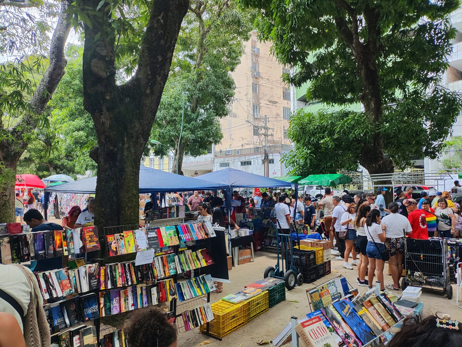 Domingos, 8h–14h, independência livreira e raridades paraenses na Praça da República. Patrimônio vivo que mantém o acesso à leitura, a preços populares, no coração de Belém.