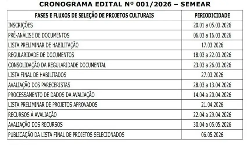 Edital rege as regras do Programa Semear 2026, e foi publicado na edição do Diário Oficial do Estado desta terça-feira (20). As inscrições vão até 5 de março.